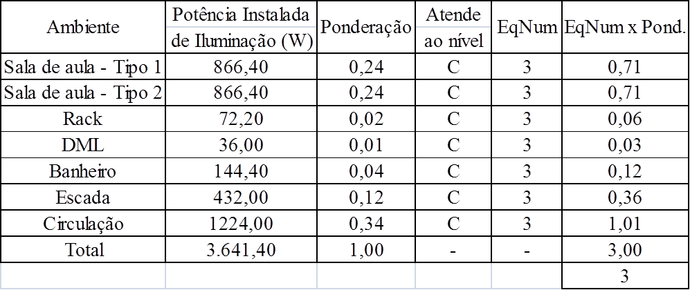 The stability of the economy, experienced in recent decades, combined with better income distribution provides an increase in electricity consumption in buildings, perceivable in Brazil and other countries. This fact led to the create new ways that encourage energy conservation, the seal PROCEL BUILDS and its manual and its Regulation are a result of this. The application of the seal on Bloco 3P, the Federal University of Tocantins (UFT) in Palmas, was based on Regulation Quality Technical buildings Efficiency Level Commercial, Public Service (RTQ-C) and the Zoning Standard Brazil. The metod takes into account the temperature, radiation, humidity and air movement, as variables directly related to thermal comfort. Analysis of the building was done using the prescriptive method, which evaluated the air conditioning system, the lighting system and envelope and by computer simulation in which they receive a rating of A (more efficient) to E (least efficient). The building received final grade A, the simulation method and B by the prescriptive method. Thus you can see certain incompatibility between the methods suggested by RTQ-C, due to limitations of prescriptive model.